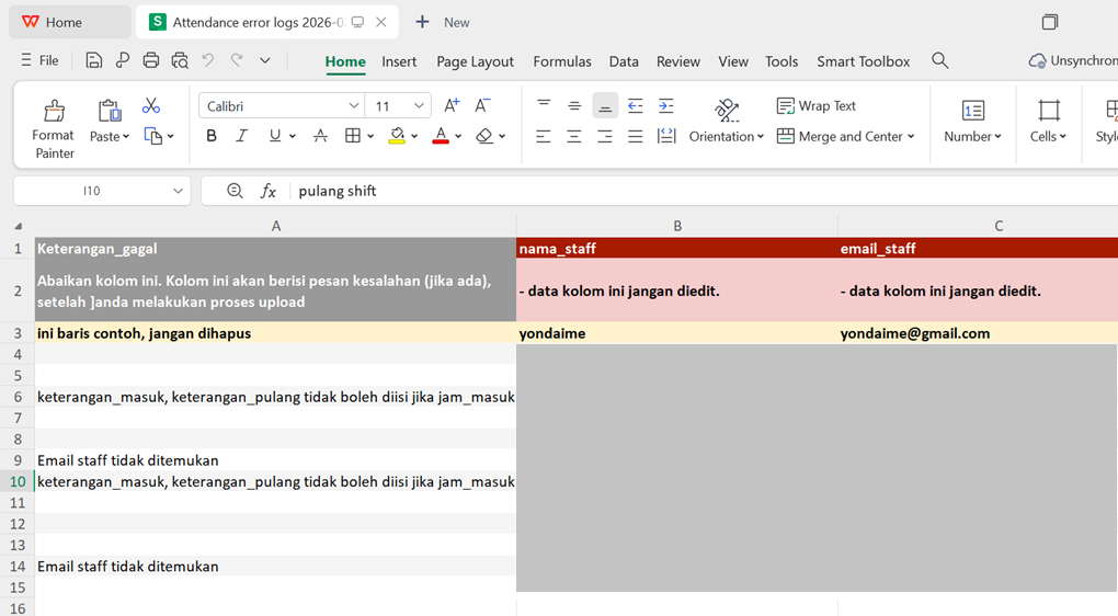 - Lakukan perbaikan pada kolom atau baris yang error sesuai dengan petunjuk yang ditampilkan. Lalu, Simpan file tersebut.