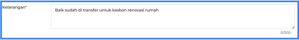 Kolom Keterangan digunakan untuk memasukkan alasan persetujuan atau penolakan kasbon, apabila diperlukan.